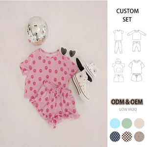 प्यूरीसन फैक्टरी थोक बच्चों कस्टम क्रेफिश प्रिंटिंग बच्चों के कपड़े रफ़ल ग्रीष्मकालीन लड़कियों के कपड़े सेट