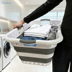 42L पॉप अप भंडारण कंटेनर अंतरिक्ष की बचत हैपर टोकरी तीन हैंडल आयताकार प्लास्टिक कपड़े धोने वाले बास्केट