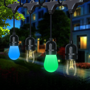 संगीत सिंक आरजीबीडब्ल्यू एलईडी बाहरी स्ट्रिंग रोशनी वाटरप्रूफ नेतृत्व वाले पैटिओ लाइट बल्ब dc12v ip65 गार्डन पार्टी सजावट के लिए