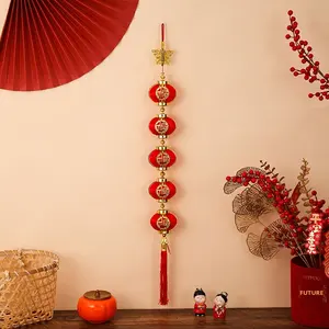 लाल प्लास्टिक मिनी छोटे लालटेन स्ट्रिंग हाउस की सजावट संख्या 8 fu 5-स्ट्रिंग चीनी शैली वसंत उत्सव दृश्य लटका